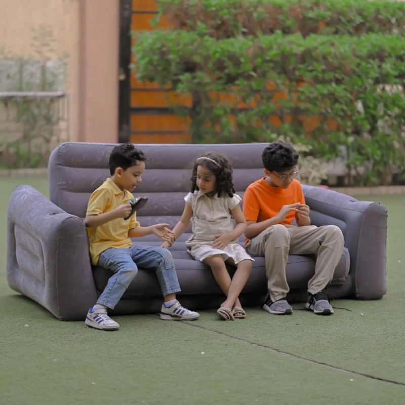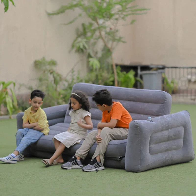 - عملية نفخ سريعة وسهلة ليتحول الكرسي إلى سرير مريح لنوم. سطح مخملي جميل بلون رمادي.