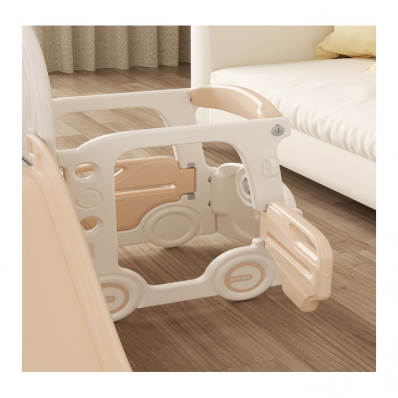 2-درابزين مقوس ومرتفع بتصميم مريح لأيدي الطفل الصغيرة للإمساك والتشبث به بشكل مريح، مع درجات صعود مانعة للانزلاق بارتفاع معتدل، ومنطقة انتظار واسعة لضمان تسلق الطفل بشكل آمن