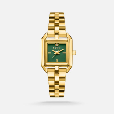 صممت الساعة لك لتضيفي لمسه أناقه الى مجموعه ساعاتك المميزه ، تتميز الساعه بمظهر أنيق ، ساعة بسوار من الستانلس ستيل باللون الذهبي، تتميز الساعة بميناء مستطيل باللون الأخضر بإطار عريض ليزيد من أناقه الساعه على يديك .نسقي الساعه مع إطلالتك الصباحية او المسائيه لإضافه لمسه راقية عليها.