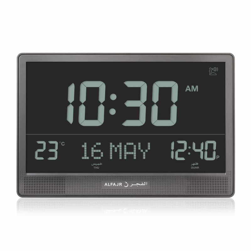 ساعة الفجر الجدارية والكبيرة بشاشة عرض 15 بوصة، أصوات متعددة للأذان (المكي – المدني – القدس – المصري – الرياض) وأوقات الأذان لجميع المدن حول العالم