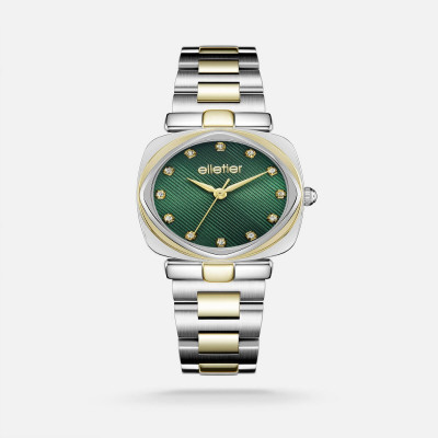 ساعة تضيف على إطلالتك لمسة مفعمه بالأنوثه ، ساعة بسير من الستانلس ستيل باللون الفضي و الذهبي ، تتميز الساعه بالميناء الرآقي باللون الأخضر المميز ، نسقي الساعه مع إطلالتك لكل يوم ، إرتدي الساعه مع سوار لإطلاله عصريه ملفته .