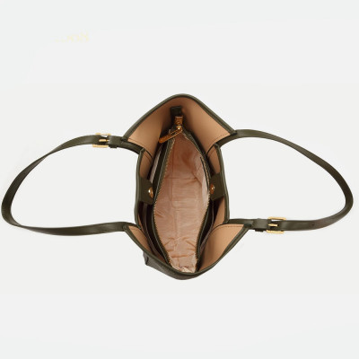 شنطة نسائيه بتصميم مميز باللون الزيتي