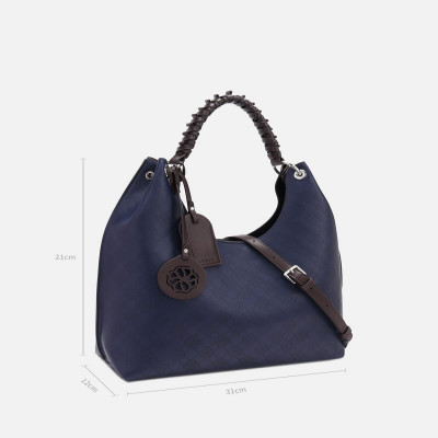 شنطه من الجلد باللون الأزرق والبني وبنقش لشعار الماركه ، تتميز الشنطة بتصميمها الواسع المناسب لإطلالتك في كل الأوقات , شنطة بإرتفاع 21 سم وعرض 12 سم وطول31سم، شنطه أنيقه بتفاصيل ملفته.