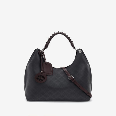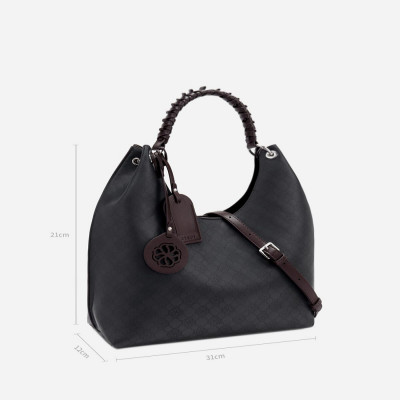 شنطه من الجلد باللون الأسود والبني وبنقش لشعار الماركه ، تتميز الشنطة بتصميمها الواسع المناسب لإطلالتك في كل الأوقات , شنطة بإرتفاع 21 سم وعرض 12 سم وطول31سم، شنطه أنيقه بتفاصيل ملفته.