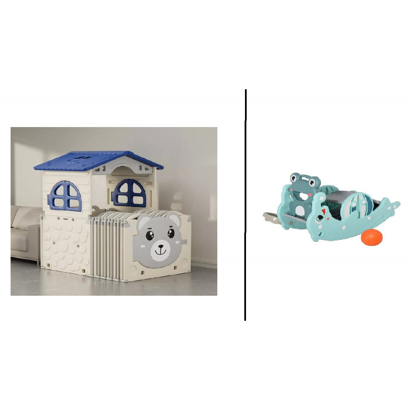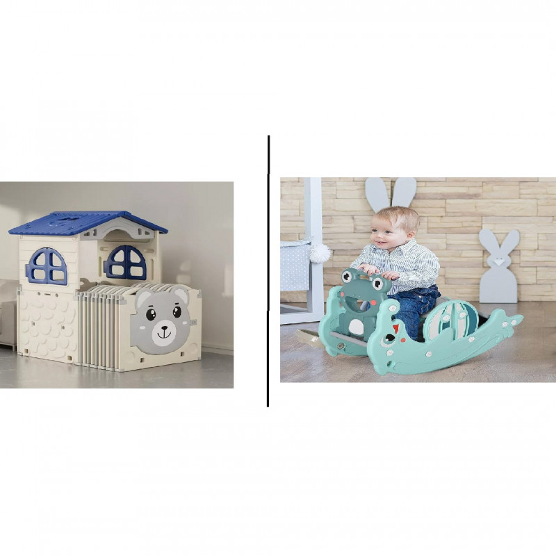يحتوي المنتج على لعبتين : غرفة العاب أطفال دب مع كوخ كبير و لعبه كرسي هزاز