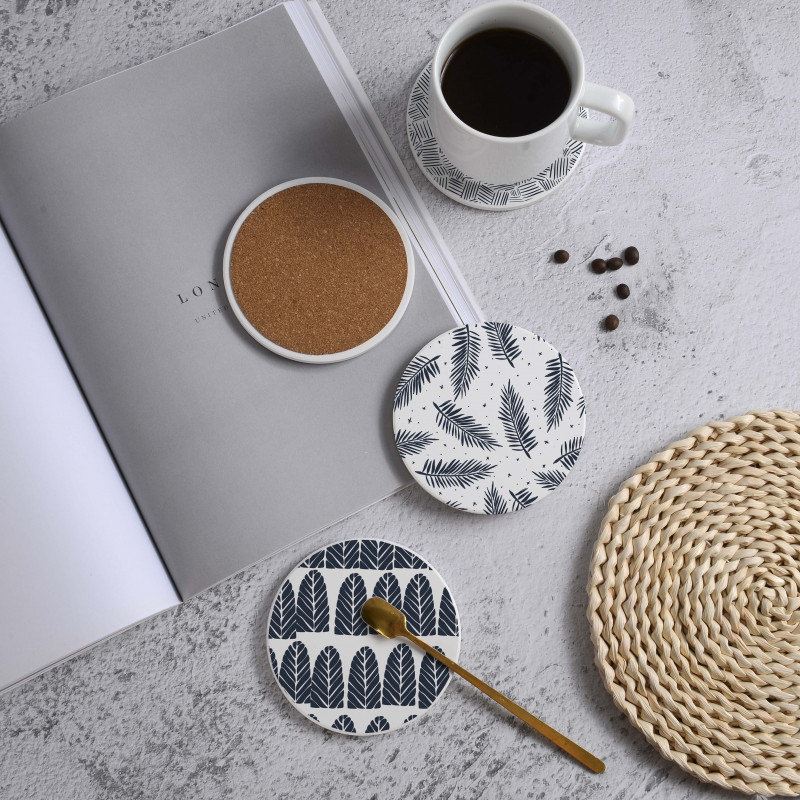 منتج يمكنه امتصاص القطرات والانسكابات لحماية الأثاث وأسطح الطاولات والأسطح. سيراميك مزود بقاعدة من الفلين لحماية الأثاث أو أسطح الطاولات من الخدوش. منتج رائع لديكور الطعام أو غرفة المعيشة أو هدايا الانتقال إلى منزل جديد.